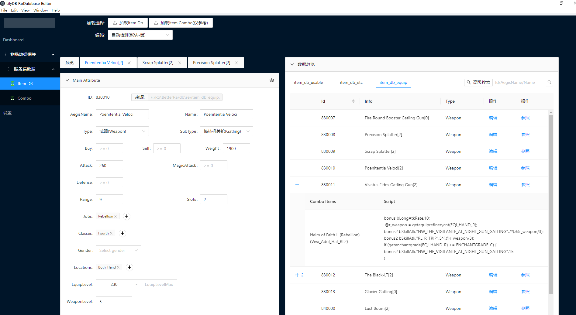 - Item Combo DB的编辑功能